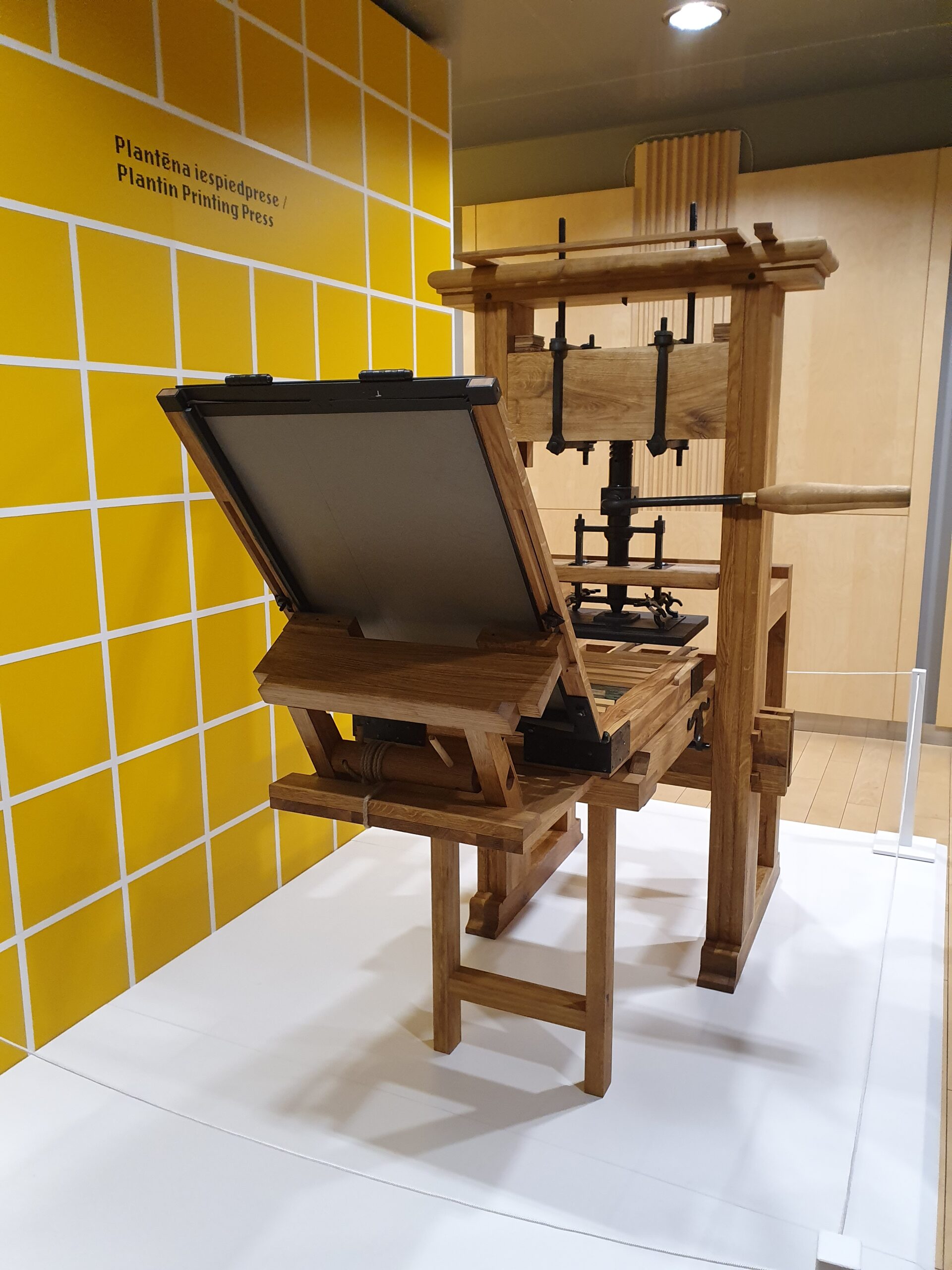 Rīgas Valsts tehnikuma Kokapstrādes nodaļas pedagogi Valdis Kvilis, Aivis Āva, Indulis Aukmanis sadarbībā ar metālkalējiem Gunti Blūmentālu, Madi Rutkovskii, Kristiānu Jurgenu īstenoja vērienīgo 16. gadsimta Kristofa Plantēna iespiedpreses kopijas projektu. Iespiedpreses kopija rūpīgi veidota, balstoties Plantēna-Moretusa muzeja rasējumiem.