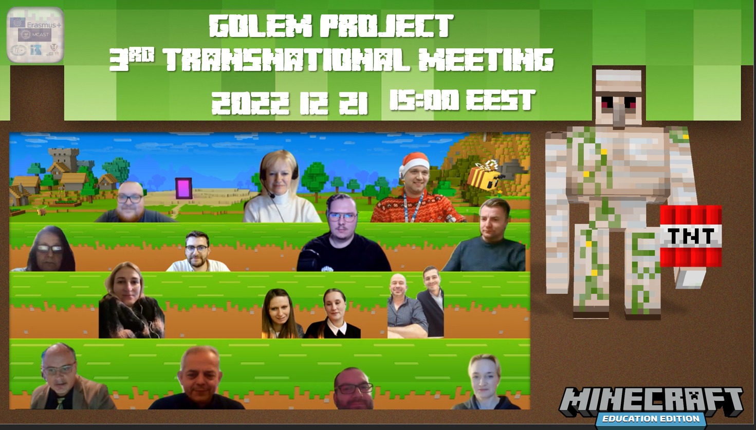 2022. gada 21. decembrī notika Erasmus+ KA2 projekta ” VET modules transformation to hybrid digital learning type and programming subject gamification for EU learners” sanāksme tiešsaistē, kurā Jevgenij Chomaniuk atskatījās uz projektā paveikto darbu. Viņš ziņoja, ka šī gada laikā ir izstrādāts profesionālā moduļa “Izstrādes pamati” apraksts (Professional Module “Developing Basics” Description), kas paredzēts programmētājiem, lai audzēkņi Minecraft vidē varētu interesantā veidā apgūt programmēšanas pamatus. Projekta partneri atzinīgi novērtēja organizētās mācības pedagogiem DUCOR “Partenija Zografski” Maķedonijā, kuru noslēgumā pedagogi ieguva šādas apliecības: “Microsoft Innovative Educator 2022” un “Minecraft: Education Edition: Teacher Academy”. Projekta koordinatore Irma Šiaulytė informēja par projekta rezultātu un dokumentu pārbaudi, par secinājumiem un ieteikumiem no pārbaudes komisijas puses. Projekta tiešsaistes sanāksmes noslēgumā vienojās par nākamās sanāksmes organizēšanu projektā iesaistītajiem pedagogiem saistībā ar otrā intelektuālā projekta rezultāta izstrādi: digitalizētu rokasgrāmatu pedagogiem.