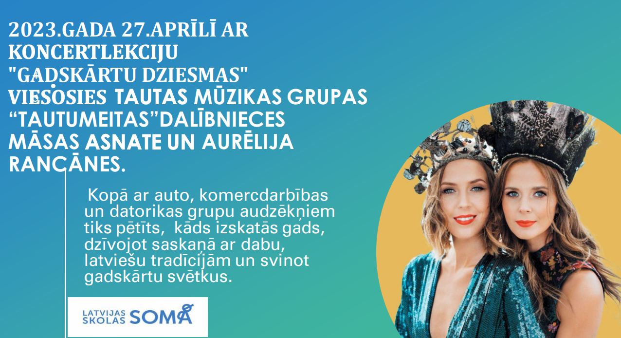 2023.GADA 27.APRĪLĪ AR KONCERTLEKCIJU “GADSKĀRTU DZIESMAS” VIESOSIES TAUTAS MŪZIKAS GRUPAS “TAUTUMEITAS”DALĪBNIECES MĀSAS ASNATE UN AURĒLIJA RANCĀNES.