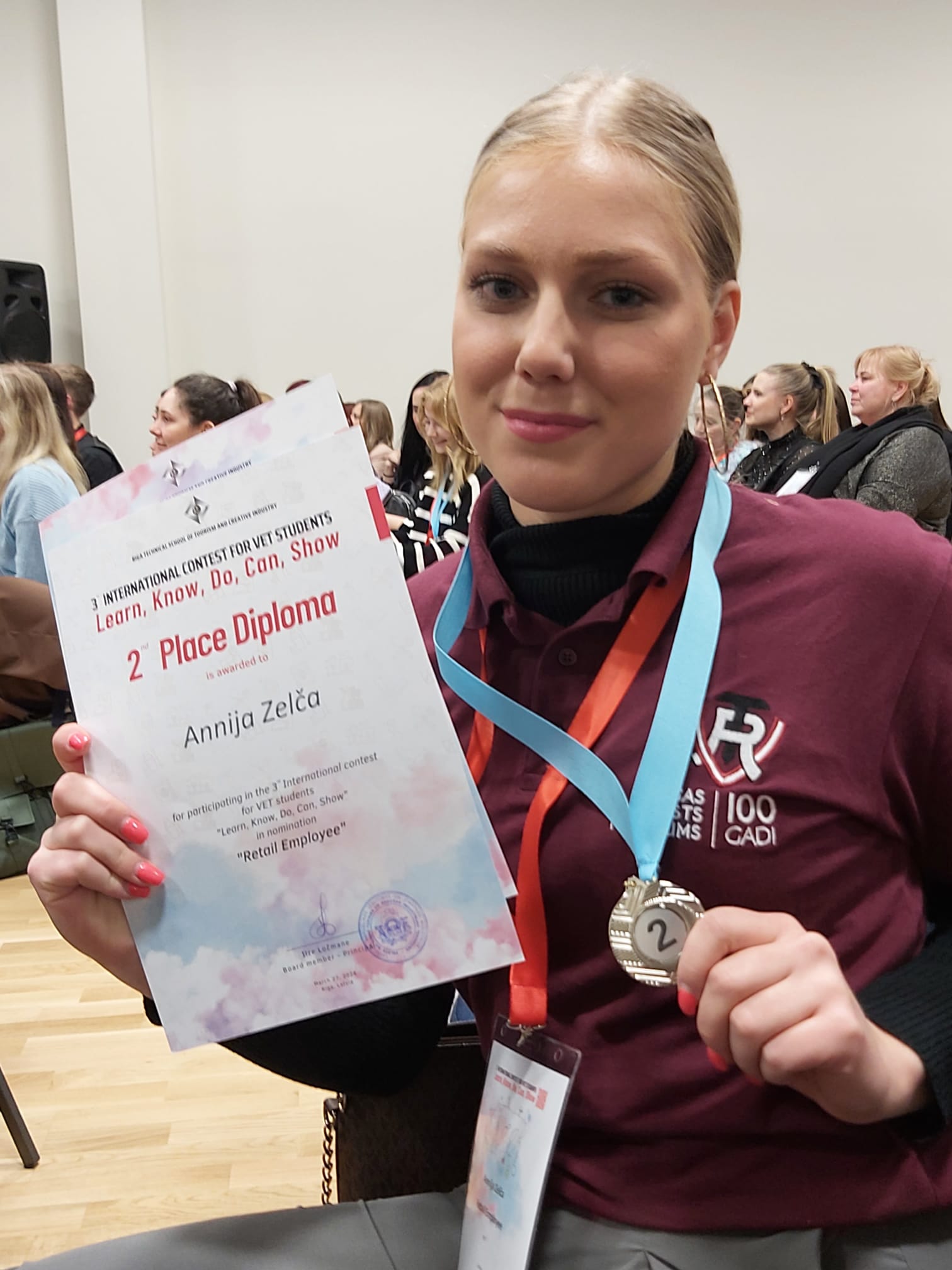 Šī gada 27. martā Komercdarbības nodaļas GK3-1 grupas izglītojamā Annija Zelča piedalījās 3. starptautiskajā profesionālās izglītības audzēkņu konkursā “Learn, Know, Do, Can, Show”, kurš norisinājās Rīgas Tūrisma un radošās industrijas tehnikumā.