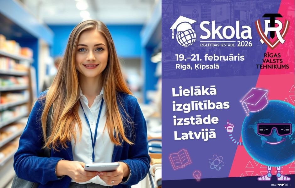 Rīgas Valsts tehnikums no 19. līdz 21. februārim aicina skolēnus, vecākus un pedagogus apmeklēt lielāko izglītības izstādi “Skola 2026”, kas notiks Ķīpsalas starptautiskajā izstāžu centrā, kur vienuviet būs iespēja iepazīt plašo profesionālās un augstākās izglītības piedāvājumu Latvijā un ārvalstīs.