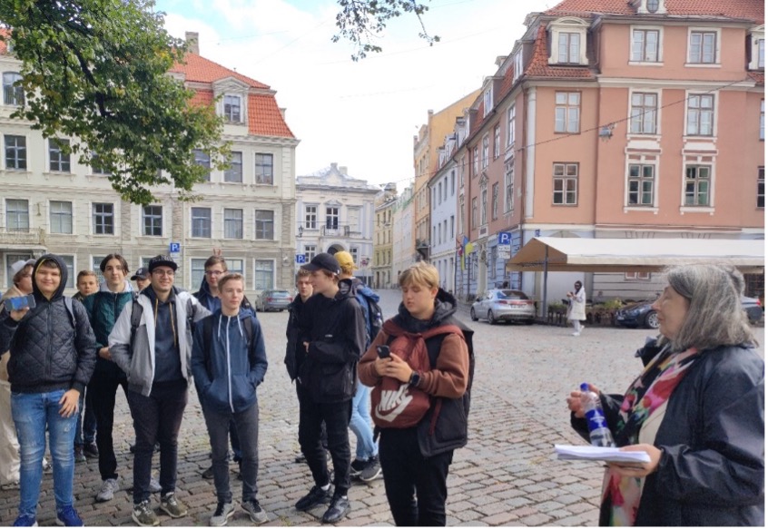 Sociālo zinību un vēstures skolotājas Andas Neimanes stundās nav garlaicīgi. Pagājušajā mācību gadā tehnikuma pirmo kursu audzēkņi devās uz Latvijas Kara muzeju, lai dziļāk apgūtu tēmu par Latvijas dalību starptautiskajās organizācijās, bet šī gada septembrī 2.kursa grupu DP2-1, DP2-2, DP2-3 un DP2-4, DT2-1, DT2-2, DT2-3, MG2 un M2 jaunieši devās pārgājienā pa Vecrīgu. Tas gan nebija parasts pārgājiens – audzēkņi iejutās vēstures gidu lomā ar mērķi dziļāk apgūt tēmu – “Kultūras mantojums kā vēsturiskās atmiņas un apziņas nesējs”. Grupām bija iedalīti dažādi Vecrīgas objekti, katram objekta “gidam” saplānotas 3-5 minūtes, lai pārējie grupas biedri uzzinātu objekta vēsturisko un tagadnes stāstu. Atgriežoties klases telpās, jaunieši novērtēja savu un savu grupas biedru stāstījumu par to, kā ir veicies ar uzdevuma izpildi. Jānovērtē arī ir jauniešu un skolotāju izturība, jo katras grupas pārgājiena laikā tika nostaigāti vairāk nekā 10 tūkstoši soļu, kā arī vairākām grupām trāpījās lietains laiks, bet grupa DP2-1 pat iekļuva pamatīgā lietusgāzē.