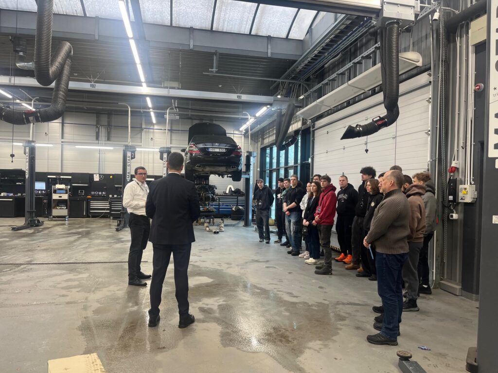 Š.g. 14. janvārī A4-1 grupa apmeklēja SIA “Veho” Mercedes-Benz vieglo automobiļu servisa centru. Ekskursijas laikā audzēkņi salīdzināja redzēto ar iepriekš apmeklēto autoservisu “Audi centrs Lidostā” un analizēja tehniskā servisa organizēšanas pamatprincipus, tostarp klientu apkalpošanu, transportlīdzekļu pieņemšanu, remonta procesu, rezerves daļu apriti, dokumentācijas noformēšanu, turpmāko komunikāciju ar klientu, kā arī vides aizsardzības un atkritumu apsaimniekošanas procesus. Pēc ekskursijas tika sagatavots rakstisks konspekts.