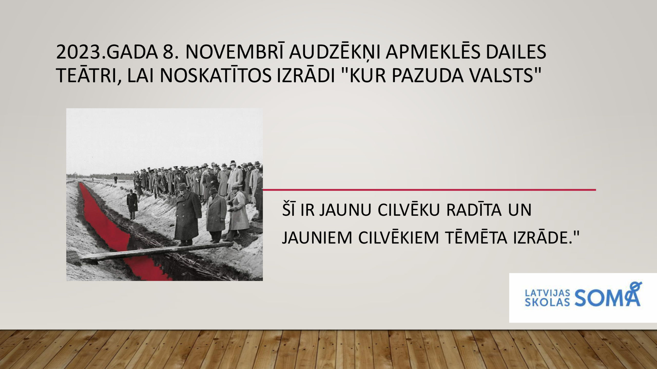 Dailes teātra izrādi “Kur pazuda valsts” skatīsies GK2, G3 grupu audzēkņi