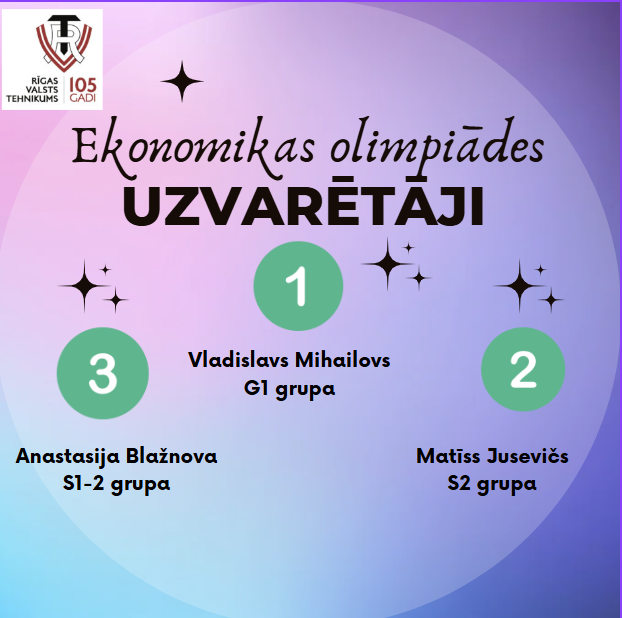Šī gada 3. decembrī notika aizraujoša ekonomikas olimpiāde, kurā 16 talantīgi audzēkņi demonstrēja savas ekonomikas zināšanas un prasmes. Sacensības bija ne tikai pārbaudījums teorētiskajām zināšanām, bet arī iespēja radoši pielietot tās praktiskos uzdevumos. Olimpiādi organizēja L Balceraite, Komercdarbības nodaļas metodiskās komisijas vadītāja. Uzvarētāji izcēlās ar labām ekonomikas zināšanām. Viņu sasniegums ir pārliecinošs pierādījums tam, ka ekonomikas principi ir cieši saistīti ar visām mūsu tehnikumā apgūstamajām specialitātēm.