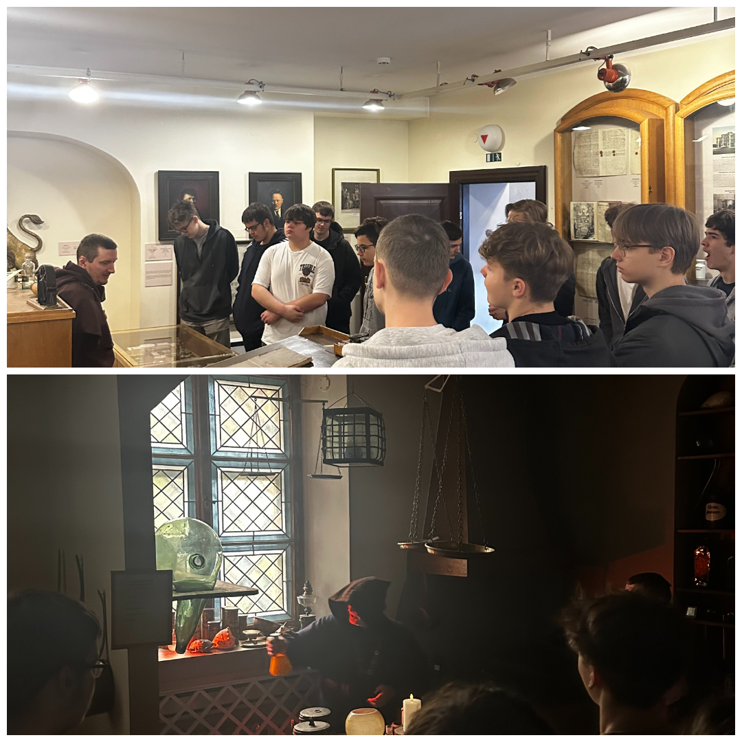 Nodarbības laikā audzēkņiem bija iespēja iepazīties ar to, kā veidojās un darbojās pirmās aptiekas, kā arī uzzināt par alķīmiķa profesijas nozīmīgo lomu zinātnes attīstībā. Gida pavadībā jaunieši apskatīja vēsturisko aptieku iekārtojumu un priekšmetus, kas izmantoti medikamentu pagatavošanai, uzglabāšanai un lietošanai.