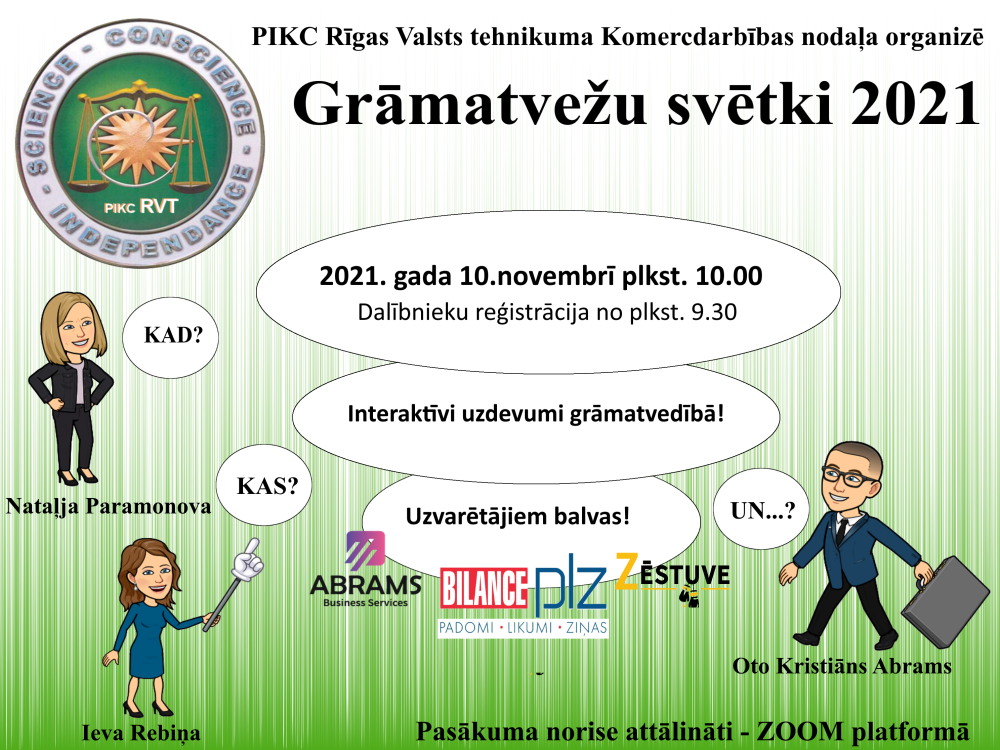 2021.gada 10.novembrī, virtuālajā vidē norisināsies PIKC “Rīgas Valsts tehnikums” Komercdarbības nodaļas rīkotais profesionālās meistarības konkurss  “Grāmatvežu svētki 2021”.
