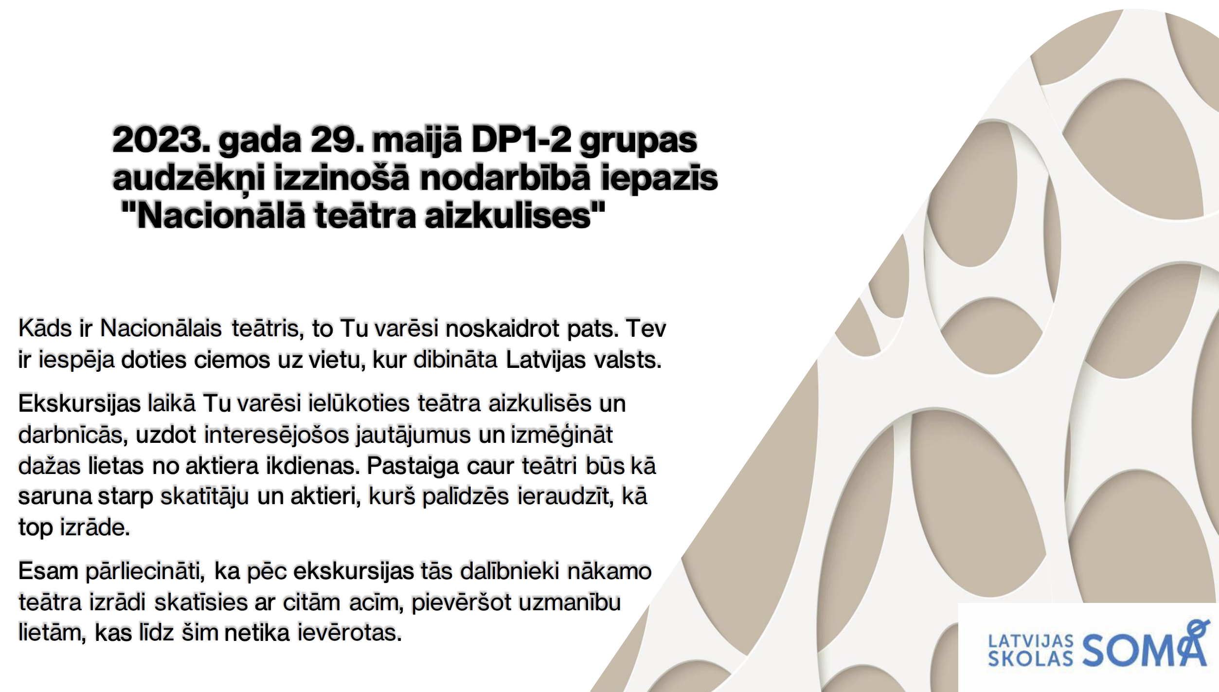Izzinoša nodarbība Latvijas Nacionālajā teātrī