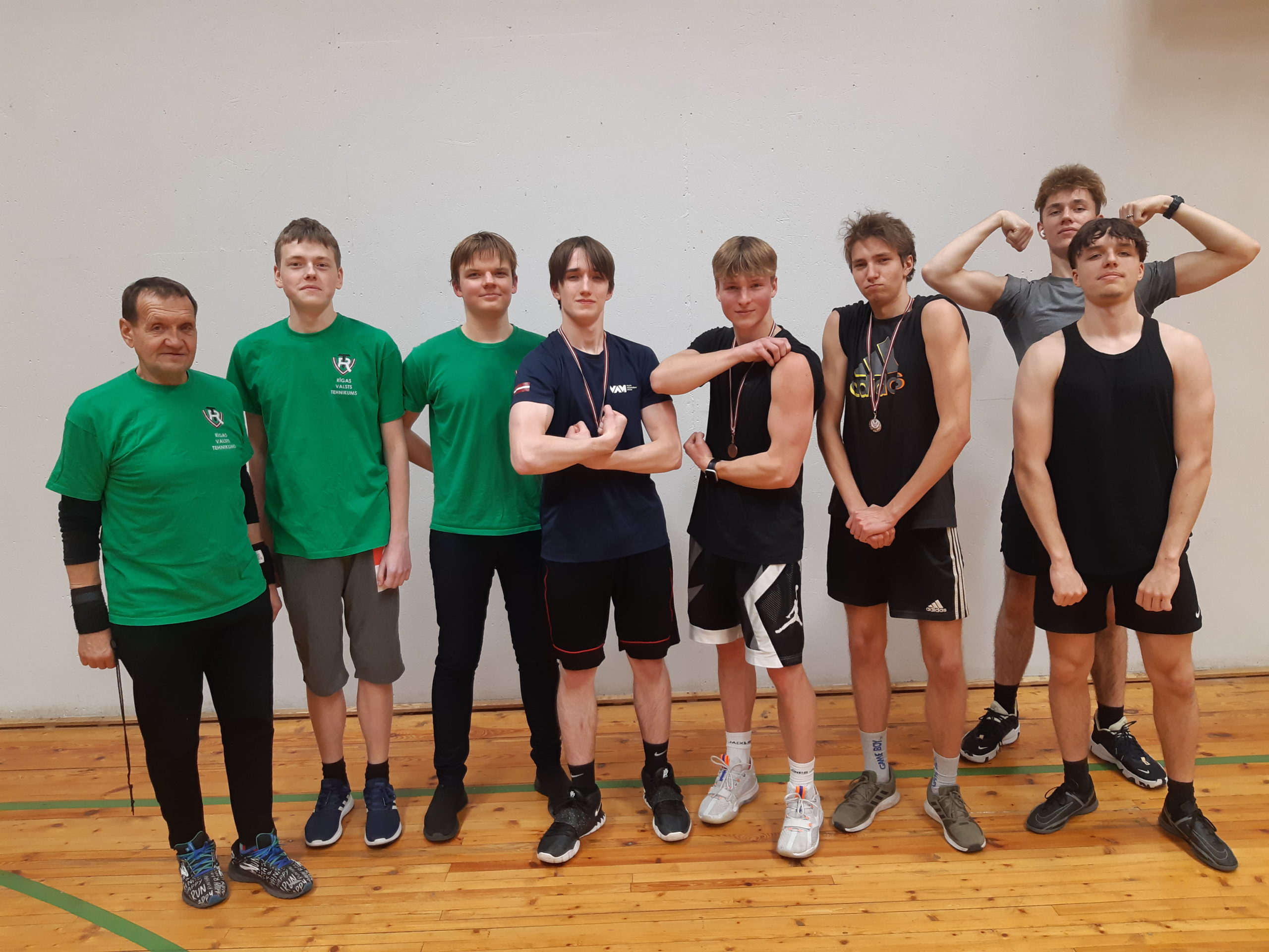 Decembrī aicinām jauniešus samērot spēkus svaru stieņa spiešanā guļus pozīcijā.
