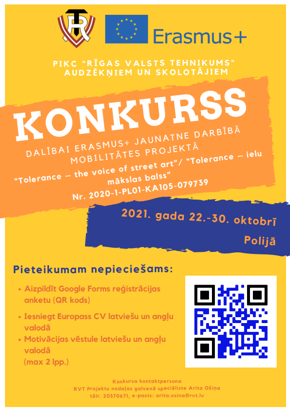Europass CV un motivācijas vēstules latviešu un angļu valodā jānosūta projekta koordinatorei Aritai Ošiņai uz e-pasta adresi arita.osina@rvt.lv.