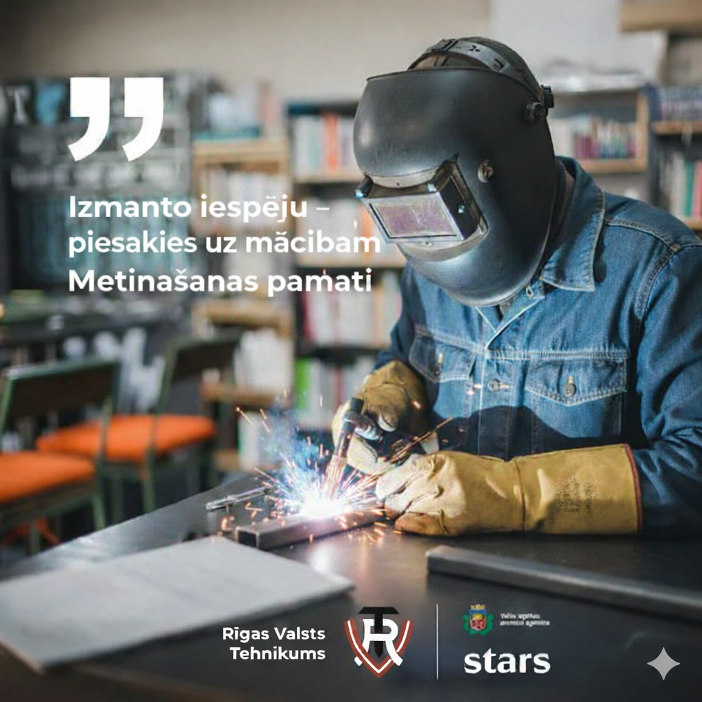Rīgas Valsts tehnikums piedalās ESF+Projekts Nr. 4.2.4.2/1/24/I/001 “Atbalsts pieaugušo individuālajās vajadzībās balstītai pieaugušo izglītībai” aktivitātēs un 3.martā uzsāks mācības mācību modulī “Metināšanas pamati”. Mācības norisināsies Dārzciema ielā 70 Rīgas Valsts tehnikuma Tehnoloģiju un inovāciju centrā.