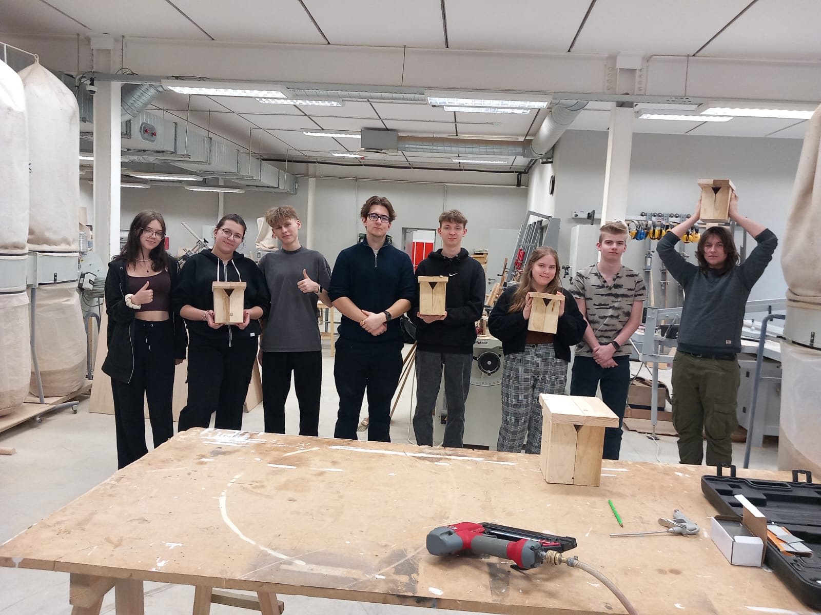 Jaunieši putnu būrus gatavoja, strādājot pa pāriem, bet nodarbības beigās katrs atzina, ka tomēr būtu gribējies izgatavot mājvietu arī saviem piemājas putniem. Ceram, ka putni jaunās mājvietas novērtēs un ir gaidāmi Jurģi.