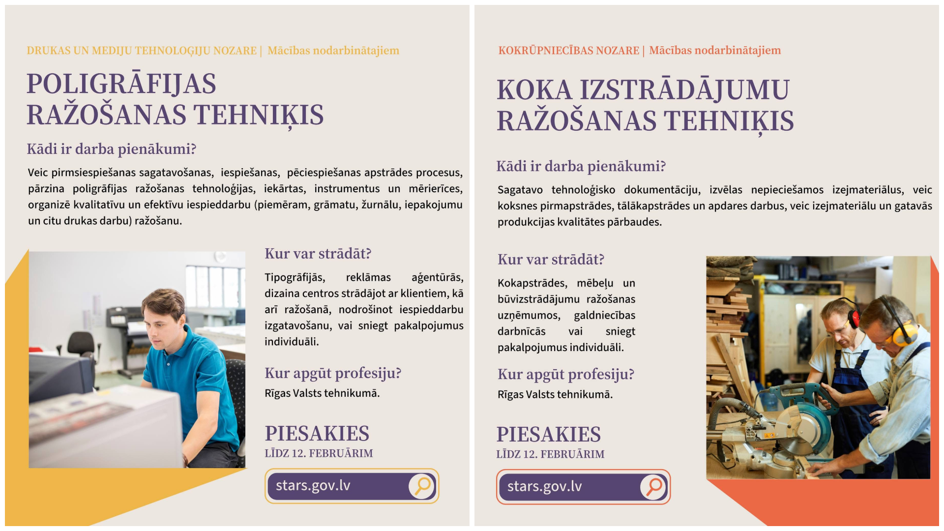 Vēlies uzzināt vairāk par mācību piedāvājumu? Apskati izglītības programmas platformā www.stars.gov.lv un piesakies mācībām, izveidojot savu individuālo mācību kontu!