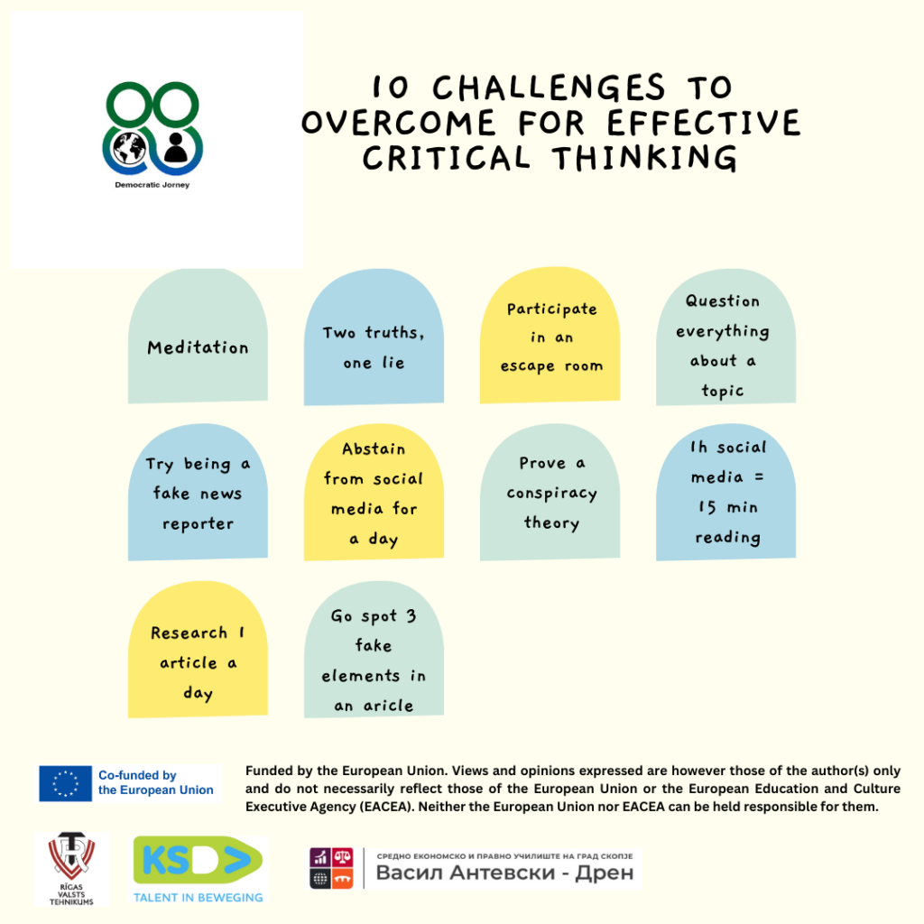 10 izacinājumi 10 dienām. Šie 10 izaicinājumi kā atpazīt dezinformāciju, kritiski domājot un analizējot informācijas saturu un avotus.