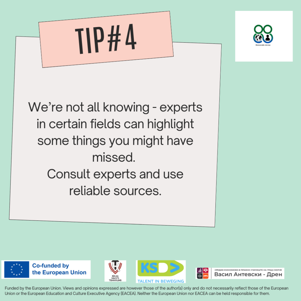 7 padomi.  Šie padomi palīdz veidot izpratni par to cik svarīgi ir kritiski domāt,  analizēt informāciju, izvērtēt argumentus un novērtēt dažādu avotu ticamību mūsdienās.
