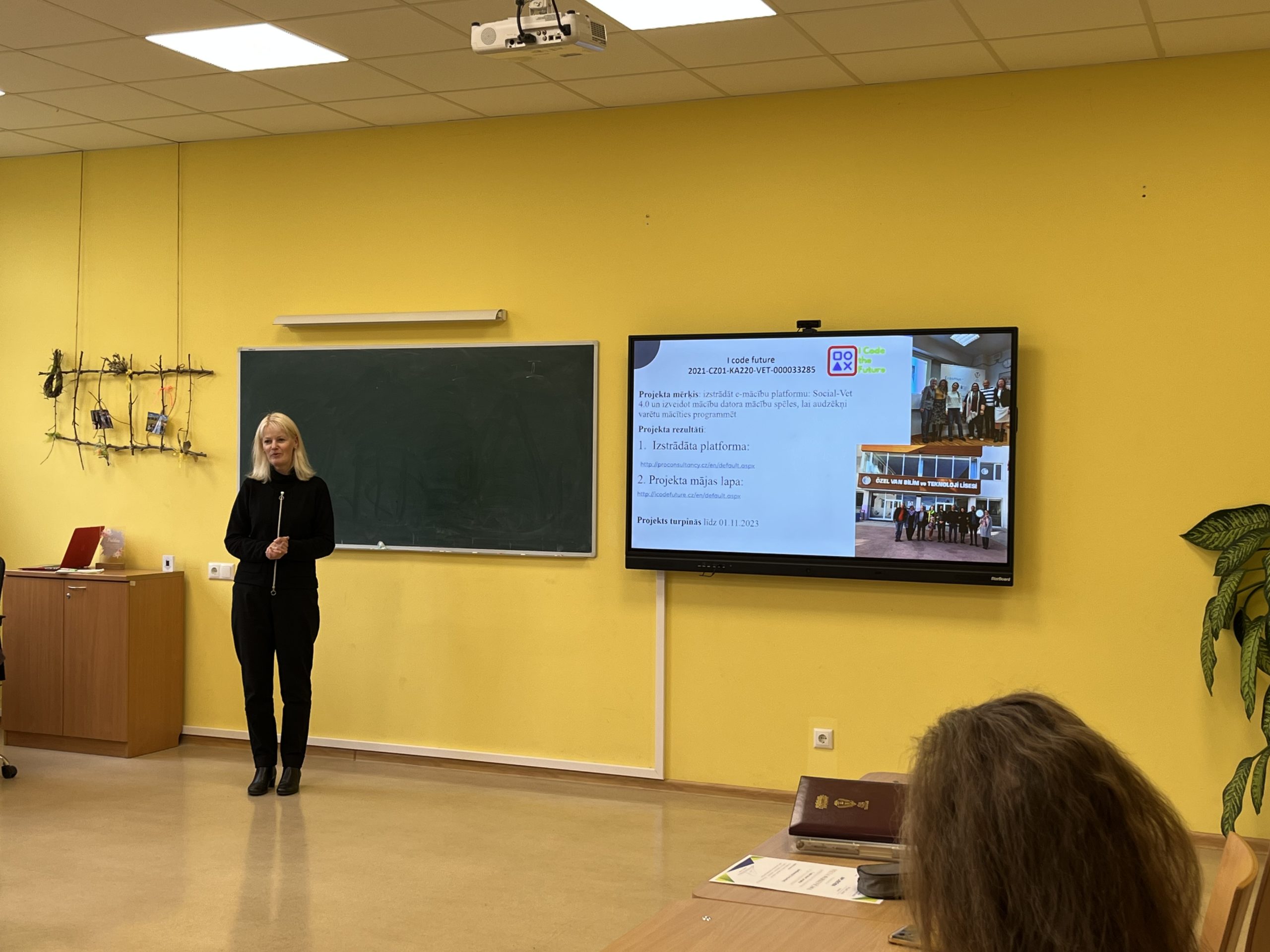 Rīgas Valsts tehnikuma Projekta nodaļas pārstāvji Sandra Bidzāne, Arita Ošiņa, Liena Ādamsone, Dace Kārkle un izglītības psihologs Zaiga Kriķe 2023.gada 30.oktobrī viesojās Aizkraukles profesionālajā vidusskolā. Brauciena mērķis bija Erasmus+ programmas Pamatdarbības Nr.2 Stratēģiskās partnerības profesionālās izglītības sektora “I code future” (“Es programmēju nākotni”)Nr. 2021-1-CZ01-KA220-VET-000033285 projekta rezultātu izplatīšanas pasākums un savstarpējās informācijas apmaiņa starp profesionālās izglītības iestādēm par projektu īstenošanu un ilgtspējību. Pasākumā piedalījās astoņi dalībnieki no Aizkraukles profesionālās vidusskolas.