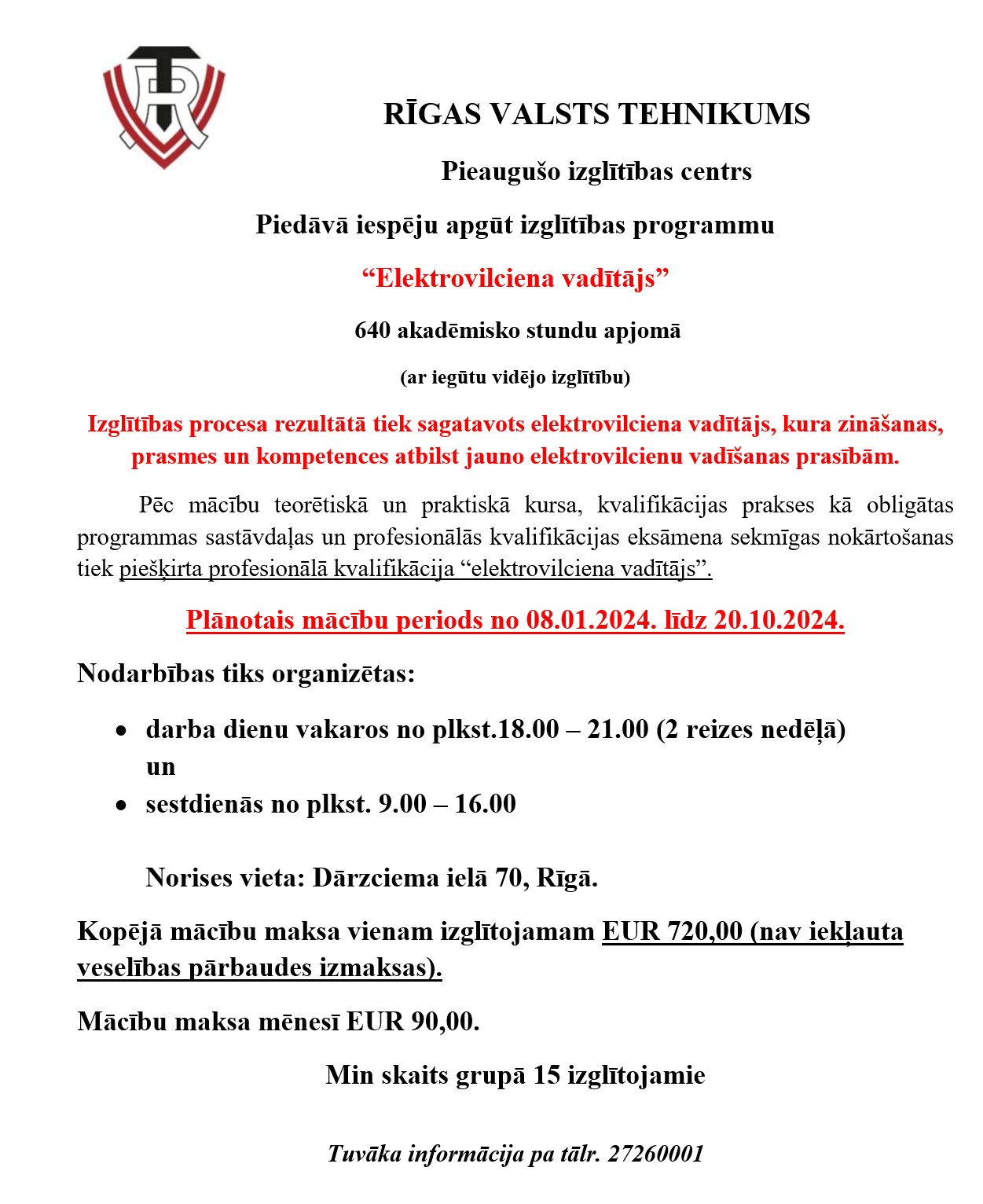 Iespēja apgūt izglītības programmu “Elektrovilciena vadītājs”