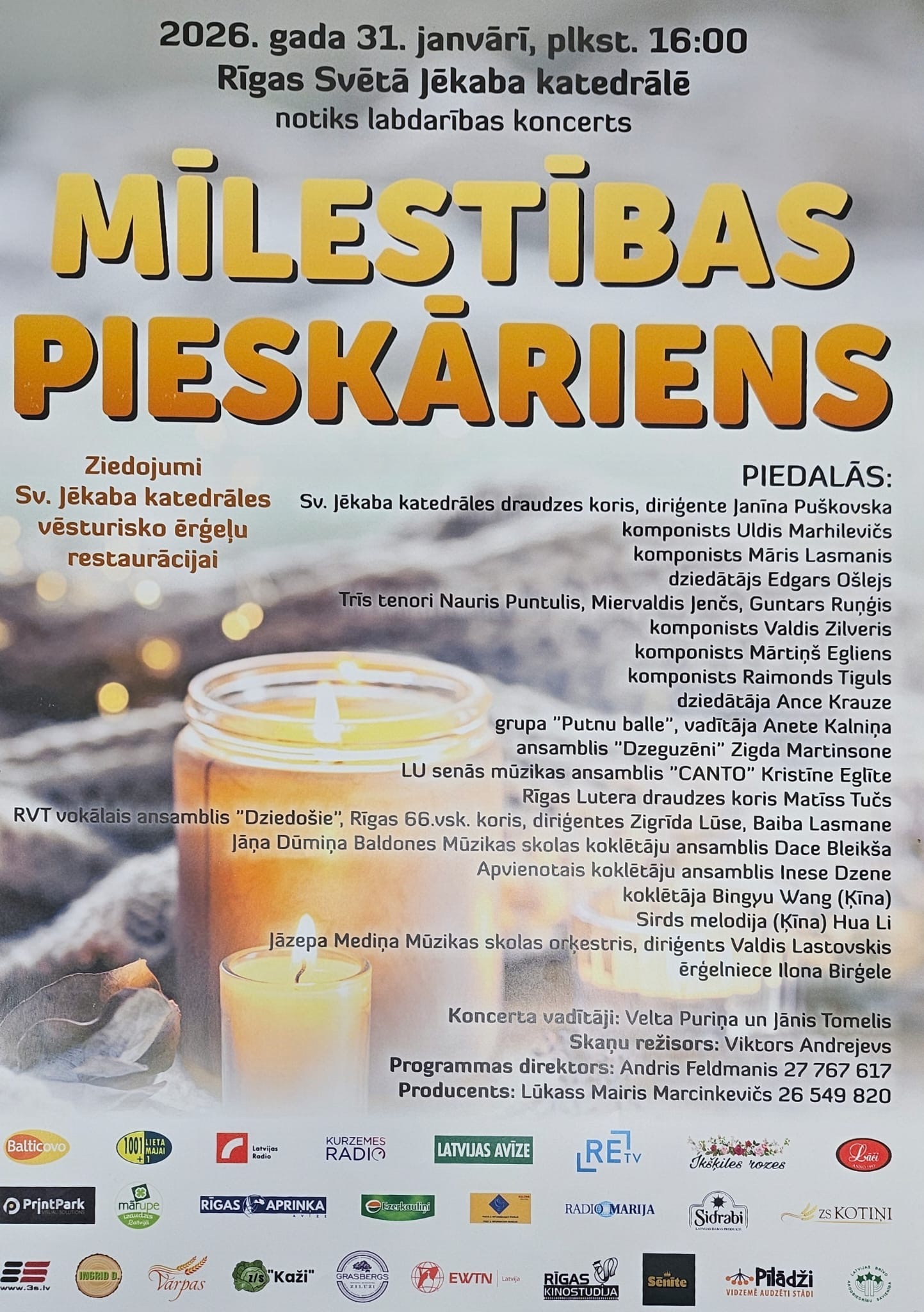 2026. gada 31. janvārī plkst. 16.00 Rīgas Sv. Jēkaba katedrālē notiks labdarības koncerts „Mīlestības pieskāriens“. Koncertā pulcēsies daudzi Latvijā labi zināmi komponisti, mūziķi un dziedātāji, kā arī dažādi kori un ansambļi, lai sniegtu brīnišķīgu koncertu un vāktu ziedojumus Sv. Jēkaba katedrāles vēsturisko ērģeļu restaurācijai.