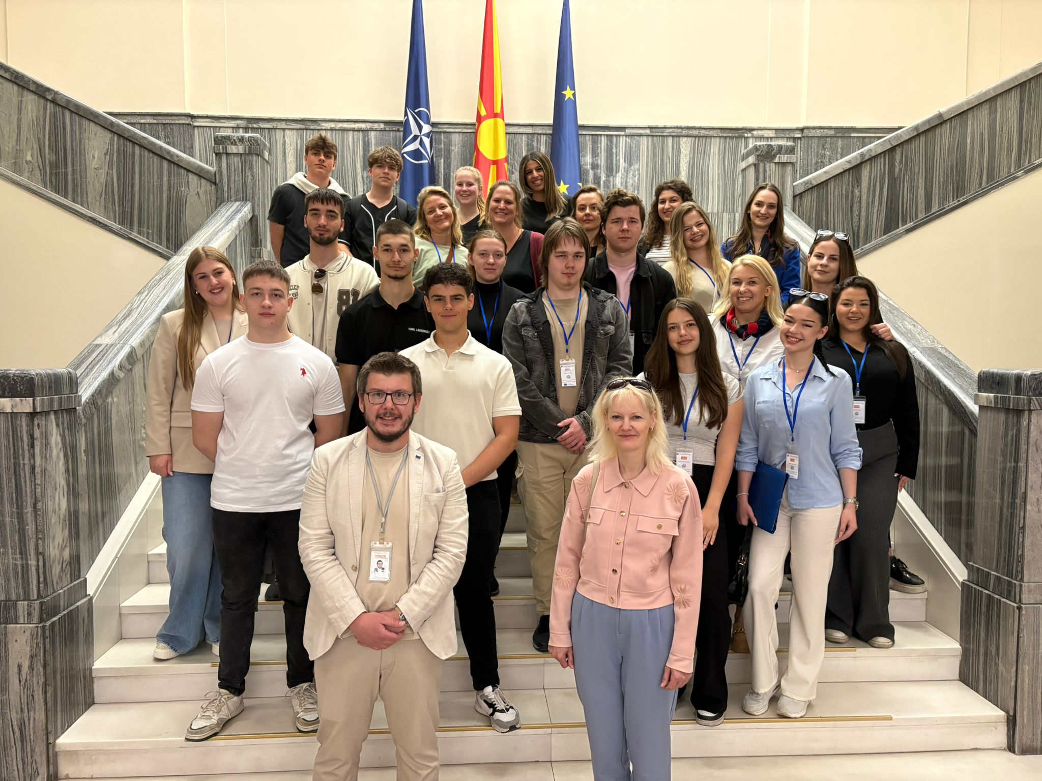 No 4. līdz 9. maijam 2025. gadā Ziemeļmaķedonijā, profesionālās izglītības iestādē SEPUGS Vasil Antevski Dren, norisinājās Erasmus+ Maza mēroga partnerības projekta “A Democratic Journey to Empower Future Leaders” (Nr. 2024-1-LV01-KA210-VET-000247617) starptautiskās mācības, kurās aktīvi piedalījās audzēkņi un pedagogi no Latvijas, Beļģijas un Ziemeļmaķedonijas. Mācību laikā dalībnieki piedalījās interaktīvās aktivitātēs par demokrātiju, pētīja demokrātijas veidus un prezentēja iepriekš veiktās aptaujas rezultātus saistībā ar jauniešu interesi par demokrātijas vērtībām un jauniešu vēlmi būt aktīviem dažādu lēmumu pieņemšanā. Tika izmantota vienaudžu mācīšanās metode (peer learning), kas veicināja pieredzes apmaiņu un sadarbību starp valstu pārstāvjiem. Dalībnieki izstrādāja ieteikumus un noteica izaicinājumus, ar kuriem saskaras jaunieši demokrātiskā sabiedrībā, kā arī uzņēma izglītojošus video materiālus, lai tos izplatītu star vienaudžiem un lai veicinātu līdzdalības nozīmes izpratni. Mācību dalībnieki apmeklēja Ziemeļmaķedonijas parlamentu, kur iepazinās ar tā darbu, vēlēšanu sistēmu un valsts vadītāju ieguldījumiem. Parlamenta sēžu zālē no katras valsts viens audzēknis uzstājās ar uzrunu, tostarp RVT audzēknis Roberts Rozenvalds uzrunāja klausītājus par tēmu “Demokrātija un daudzveidība”. Mācību noslēgumā dalībniekiem tika pasniegtas apliecības, un tika izstrādāts konkrēts plāns, kā iegūtās zināšanas un pieredzi nodot tālāk vienaudžiem savās izglītības iestādēs, nodrošinot projekta ilgtspēju. Šī pieredze būtiski stiprināja audzēkņu izpratni par demokrātiju, pilsonisko līdzdalību un līderības nozīmi mūsdienu sabiedrībā. RVT pārstāvēja audzēkņi: Anna Marija Trankale, Roberts Rozenvalds, Aigars Cīrulis, Audzēkņu pašpārvaldes vadītāja Ilona Šnikvalde un Projektu nodaļas galvenā speciāliste Liena Ādamsone.