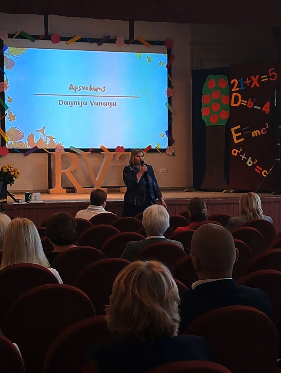 Svētku gaitā klātesošos skolotājus sveica direktore Dagnija Vanaga, kopā ar Rīgas Valsts tehnikuma administrācijas pārstāvjiem pasniedzot Cildinājuma rakstus.