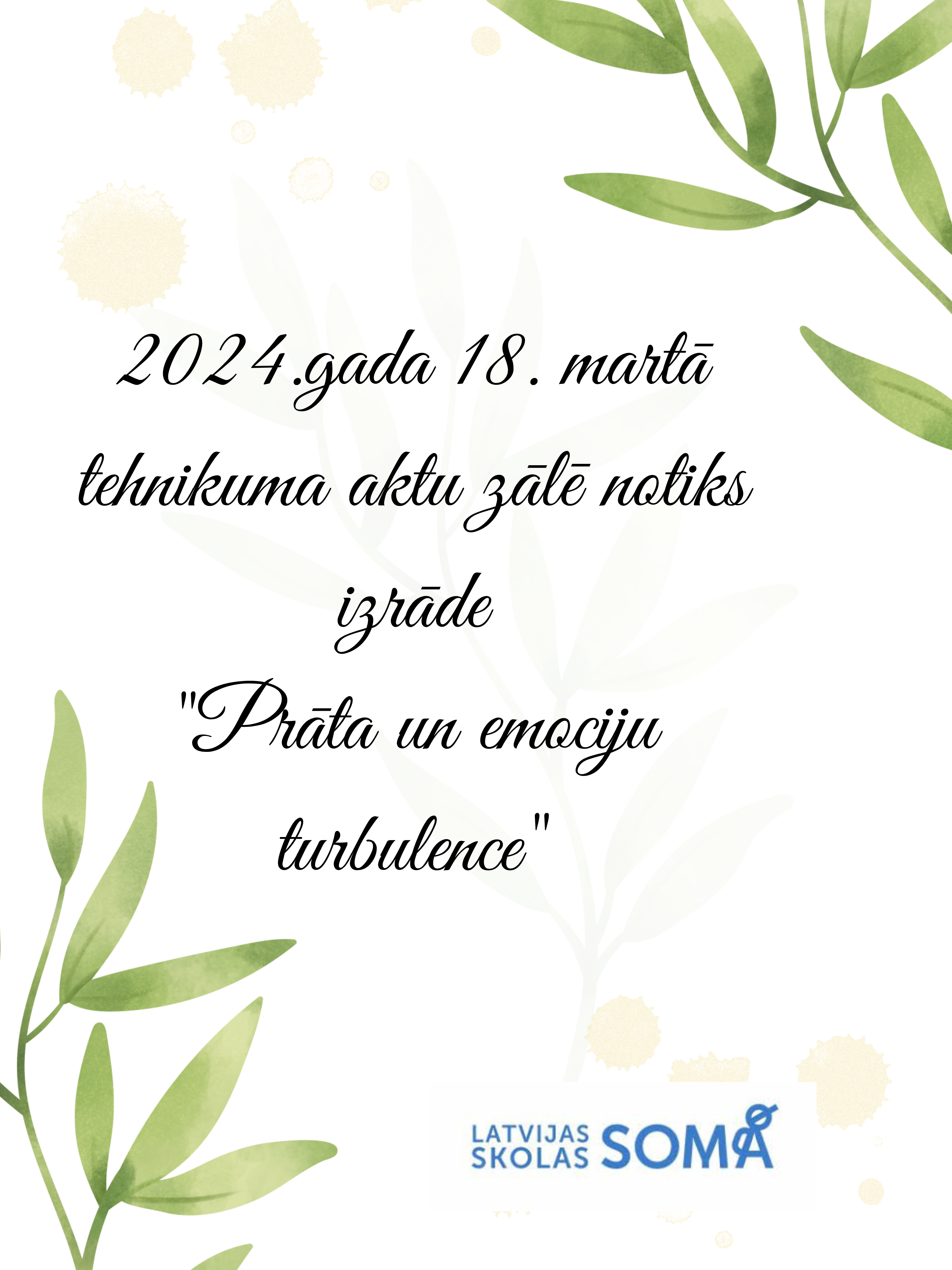 Tehnikuma audzēkņiem- aktu zālē iespēja noskatīties izrādi “Prāta un emociju turbulence”