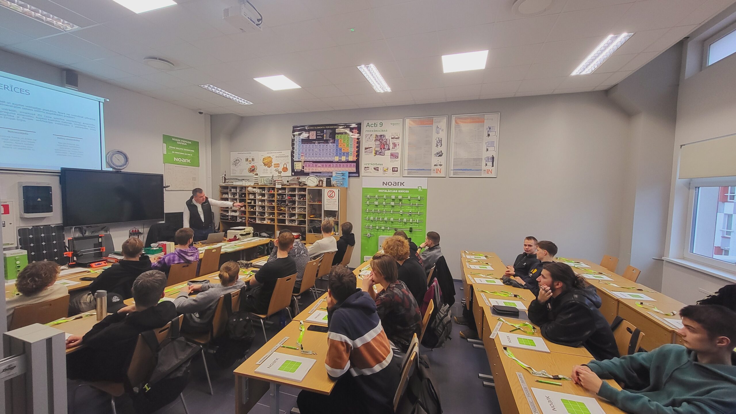 Enerģētikas nodaļā 12. novembrī EA3 grupai vieslekciju vadīja uzņēmuma “Noark Electric Latvia” pārstāvji, kuri pastāstīja par uzņēmuma globālo struktūru un pārstāvniecībām visā pasaulē. Audzēkņi uzzināja, kādas zemsprieguma elektriskās komponentes uzņēmums izstrādā, ražo un izplata. Audzēkņiem bija iespēja uzdot jautājumus un saņemt atbildes par dažādu elektrisko aparātu darbību, montāžu un tehniskajiem parametriem. Uzņēmuma pārstāvji uzsvēra centienus nodrošināt klientiem augstas kvalitātes produktus par pieņemamu cenu un ar garantiju. Iegūtā pieredze audzēkņiem noderēs, saskaroties ar Noark Electric Latvia elektriskajiem aparātiem prakses darbos.