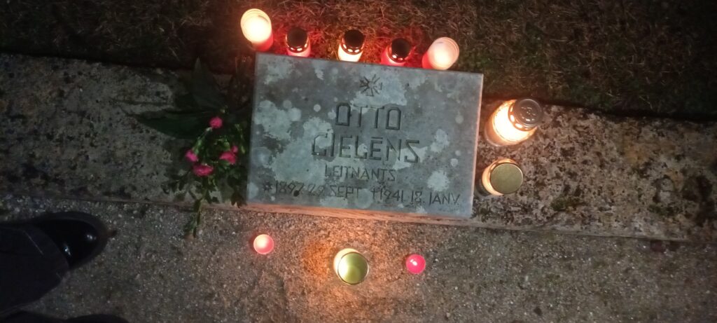 11. novembra vakarā S1 grupas audzēknes Kitija Firsova, Zane Gavare, Elza Klibiķe, Emīlija Paņihina, Anželika Tarvida kopā ar grupas audzinātāju Inesi Tionu devās uz Rīgas Brāļu kapiem, Mežaparkā, lai godinātu Rīgas Valsts tehnikuma absolventu Otto Cielēnu (1897-1941), kurš saņēma Lāčplēša kara ordeni 1922. gadā par izrādīto varonību 1919. gada 10. marta cīņās pie Saldus, ienaidnieka aizmugurē. Pie Popuļu mājām Saldū O. Cielēns kopā ar dažiem kareivjiem brīvprātīgi apgāja ienaidnieka spārnu, ielauzās lielinieku aizmugurē un ar patšautenes uguni sacēla pretinieka rindās paniku, kā rezultātā lielinieki bēga, atstājot kaujas laukā 11 kritušos un 2 rotu munīciju. Padomju okupācijas laikā arestēts un pēc kara tribunāla sprieduma 1941. gadā Babītes pagastā nošauts. 1941. gada jūlijā apbedīts Rīgā, Brāļu kapos. Lai mūžīga piemiņa mūsu varoņiem, kuri krita par Latvijas neatkarību!