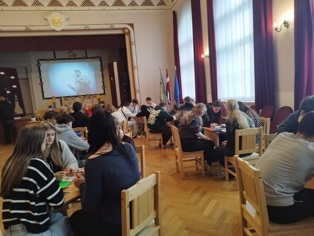 Viktorīnas sākumā komandām bija jāizpilda radošs uzdevums – jāizgatavo apsveikuma kartīti Latvijai ar novēlējumu valstij tās dzimšanas dienā.