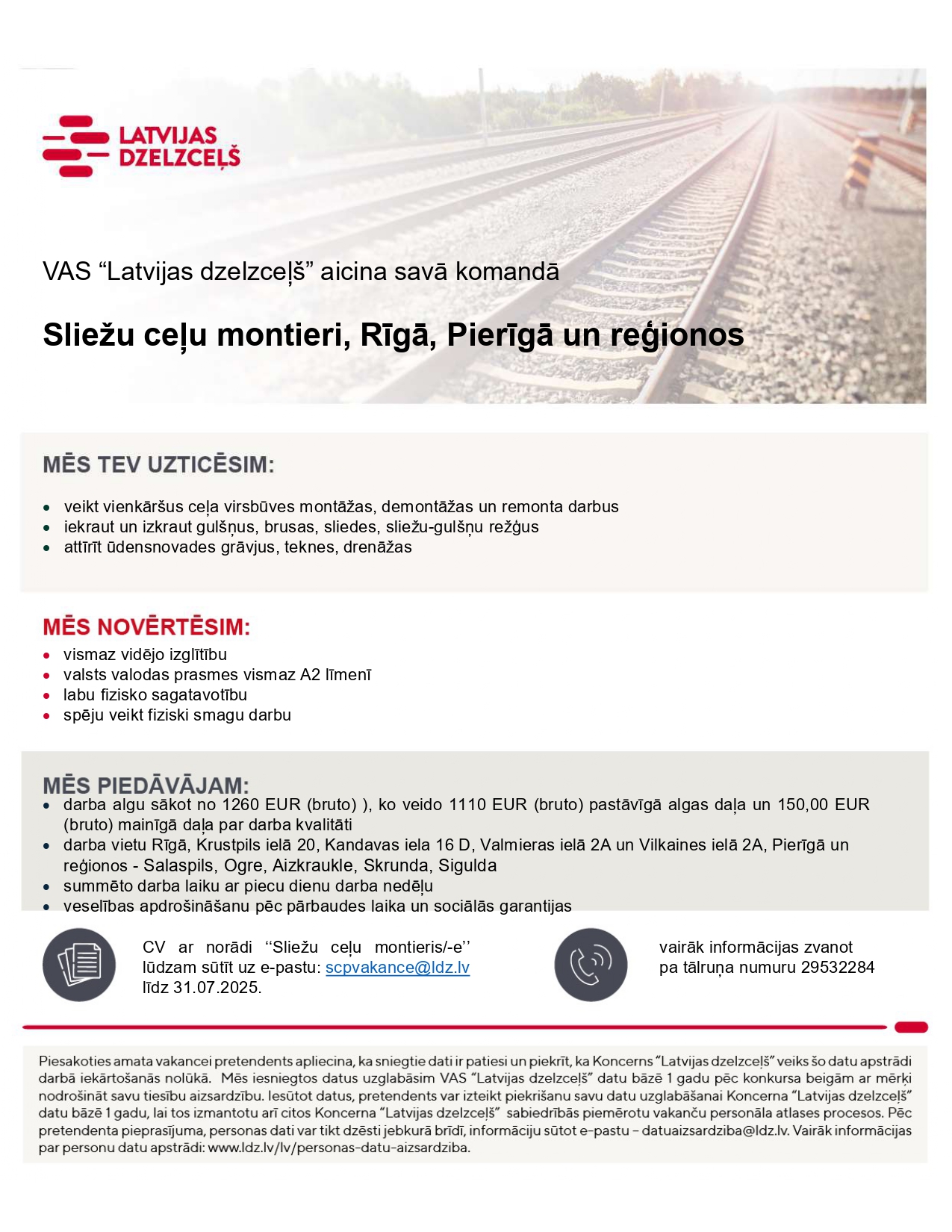 VAS “Latvijas dzelzceļš” aicina savā komandā!