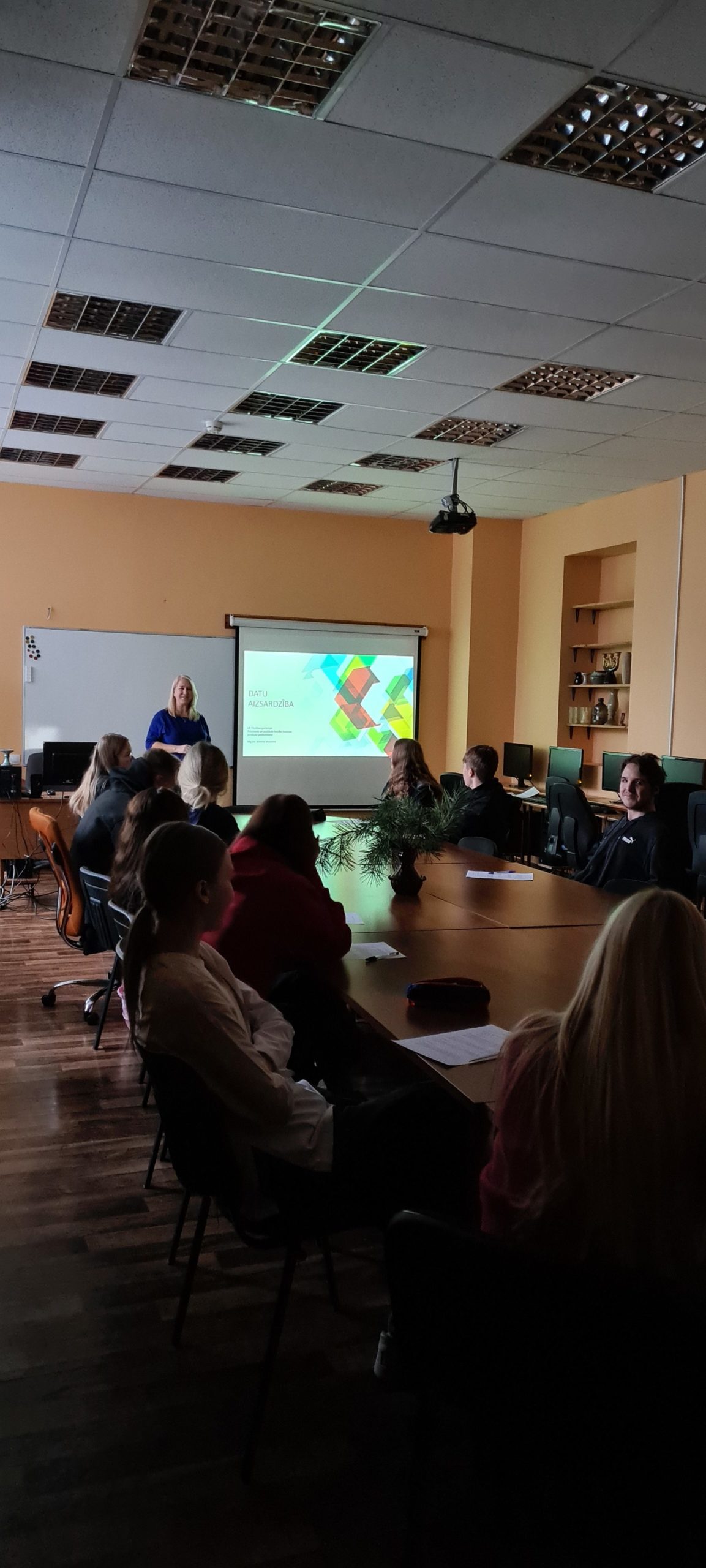 Profesionālā moduļa “Dokumentu un informācijas aprite” mācību stundu laikā, skolu programmas „Dzīvei gatavs” ietvaros, sadarbībā ar Latvijas Republikas Tiesībsarga biroju š.g. 10. janvārī Komercdarbības nodaļas B1 grupas izglītojamiem tika noorganizēta vieslekcija par tēmu „Datu aizsardzība”.